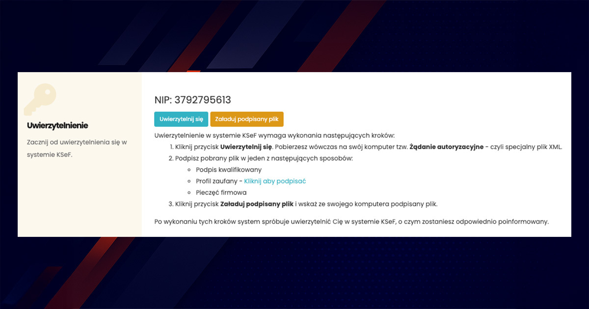 Następnie uwierzytelnij się w KSeF. Możesz to zrobić: